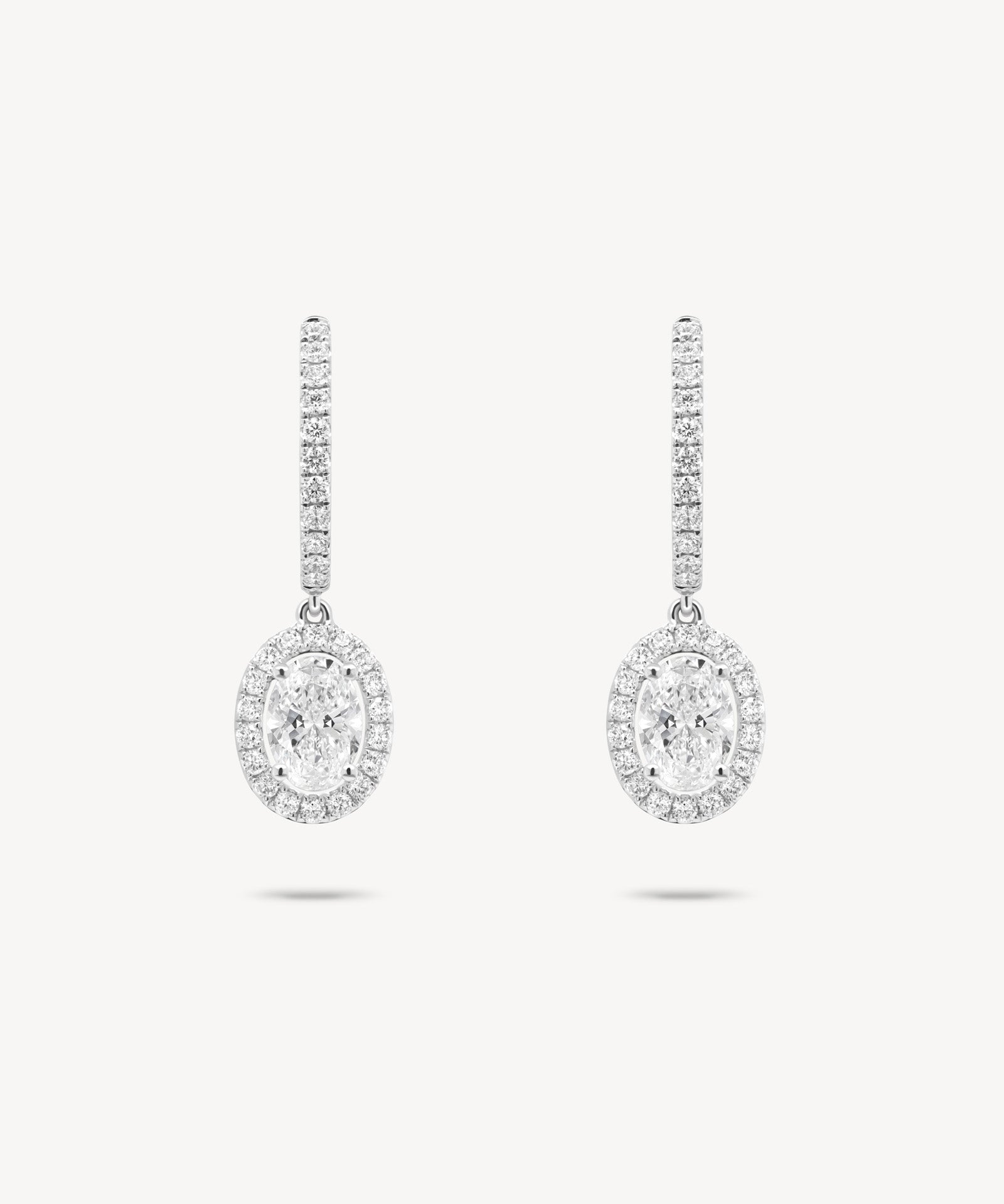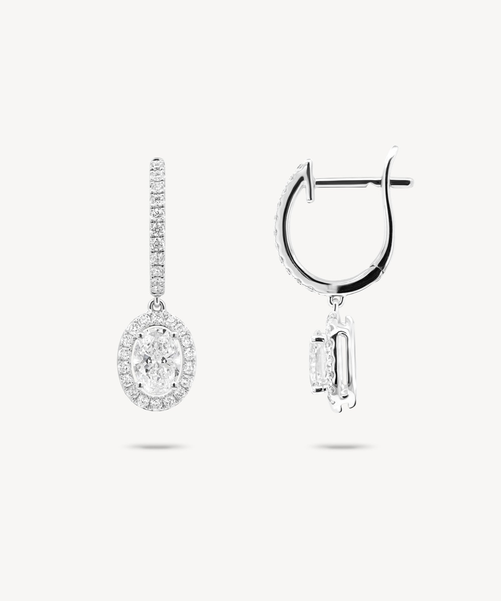 Oval Cut Diamond Huggie Halo Drop Earrings