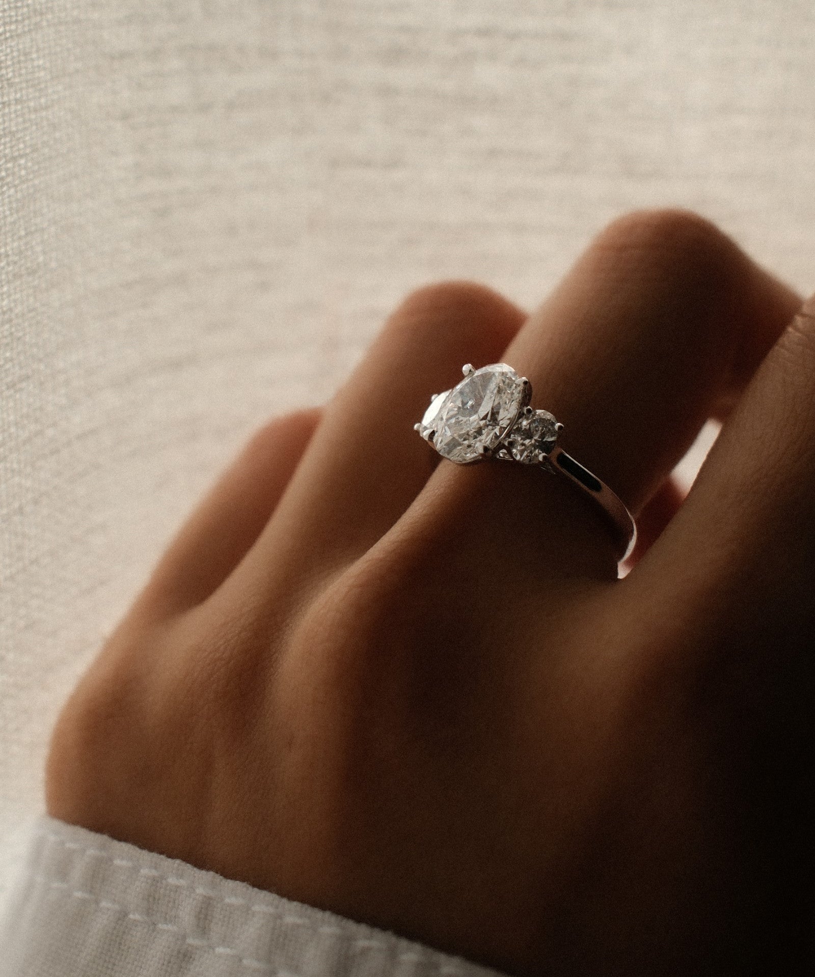 Oval Cut Diamond Three Stone Ring With Oval Cut Side Stones