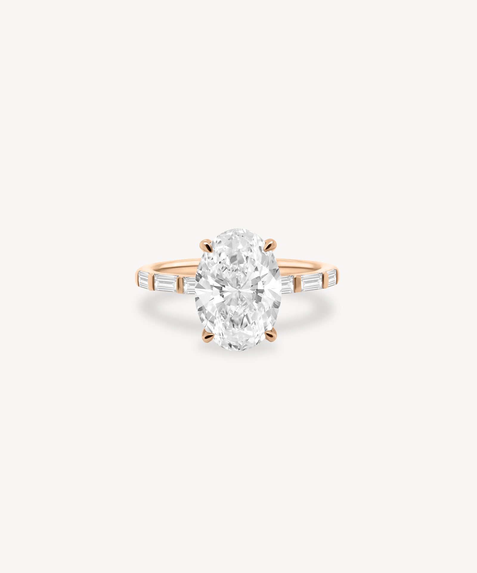 Oval and Baguette Cut Diamond Ring in Bar Setting