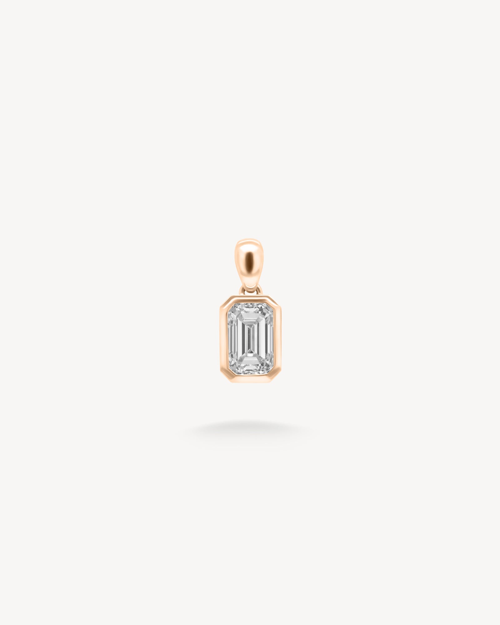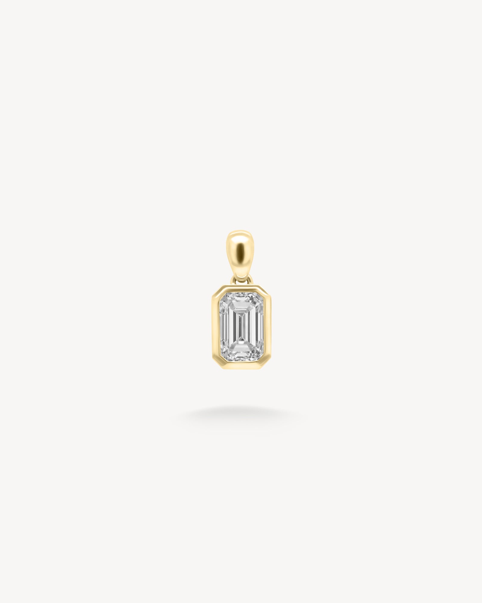 A vertically-set emerald cut diamond in a clean bezel frame. Choose your size and add to a chain you already love.