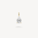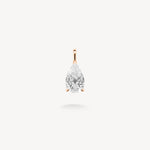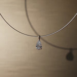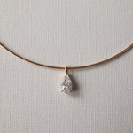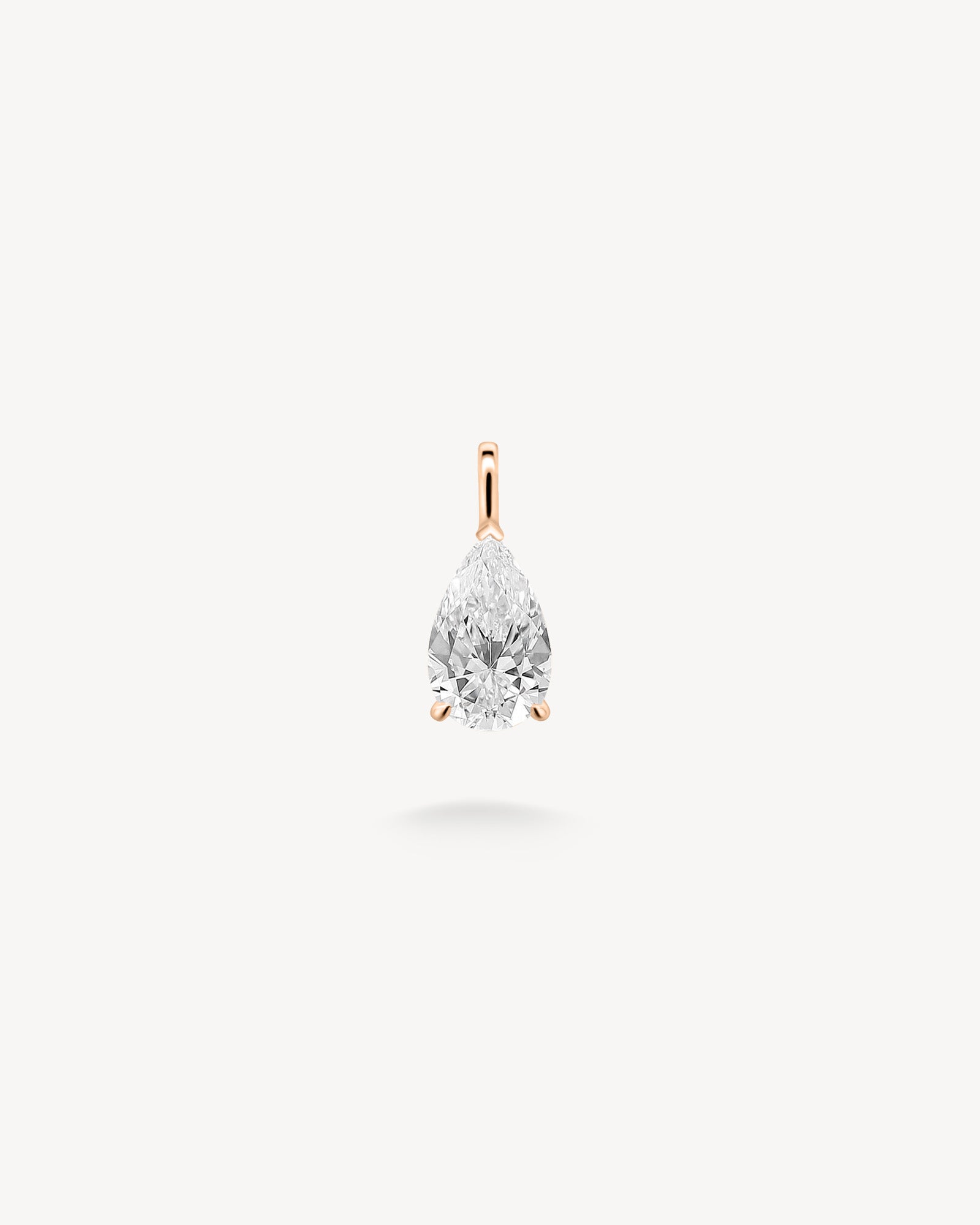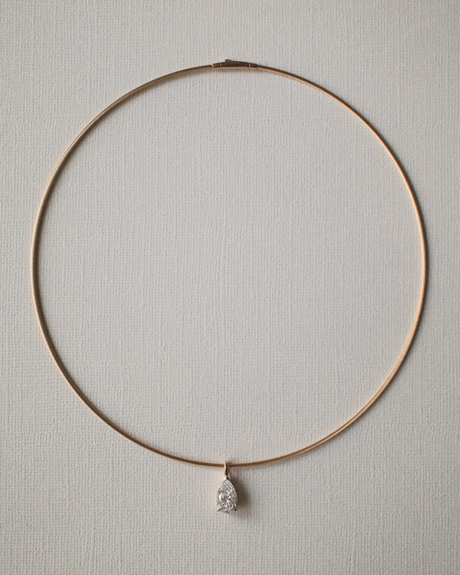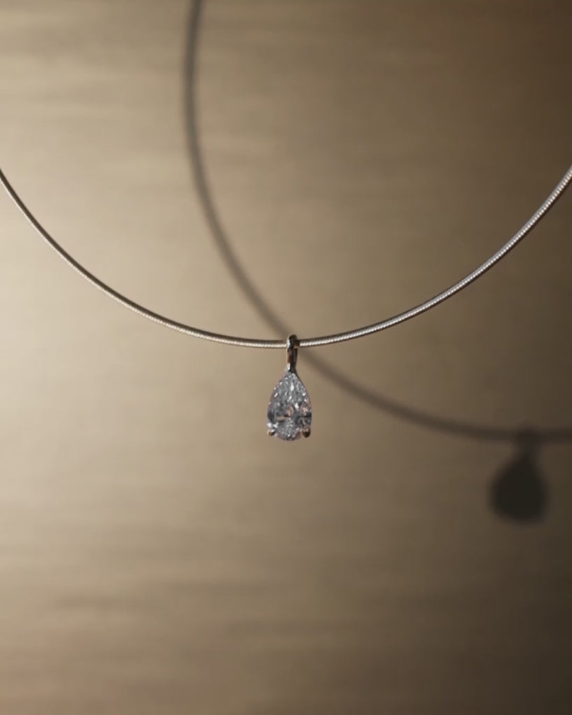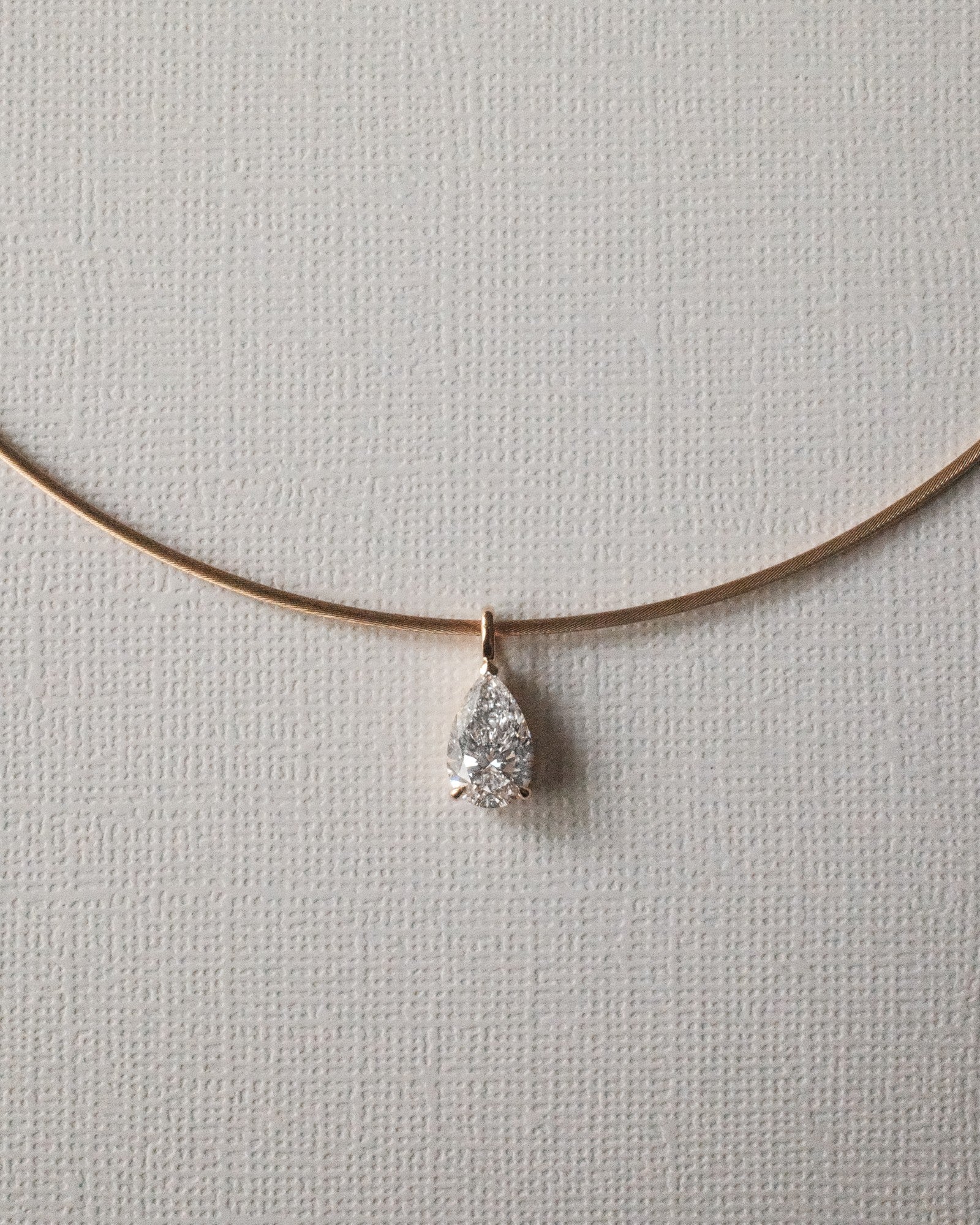 A single pear cut diamond in a size of your choosing. Minimalist by nature, bold in effect, made to wear alone or layered your way.