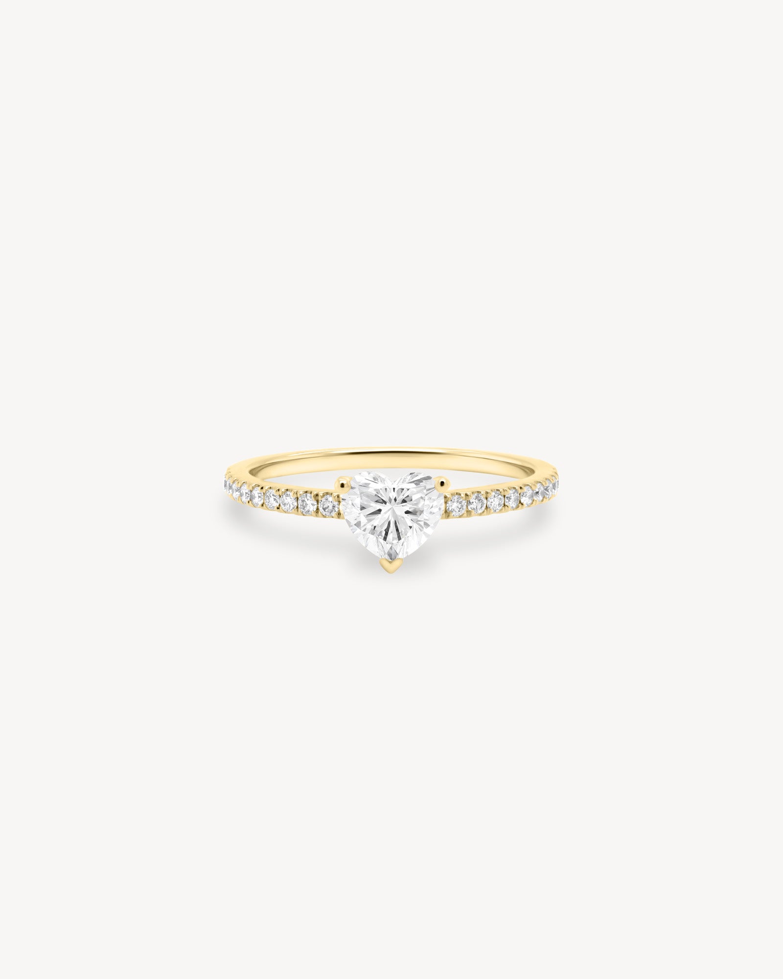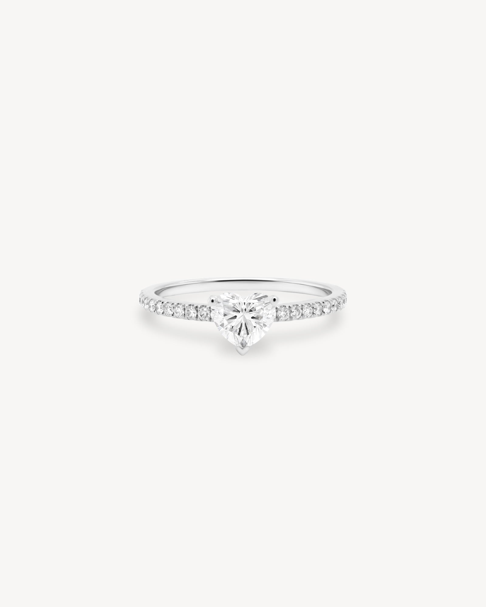 A slim pavé band accented with a Heart shaped diamond, this mini ring is designed to stack or wear solo for a subtle touch of sparkle. Petite and easy to wear, it’s an effortless addition to your everyday jewelry.