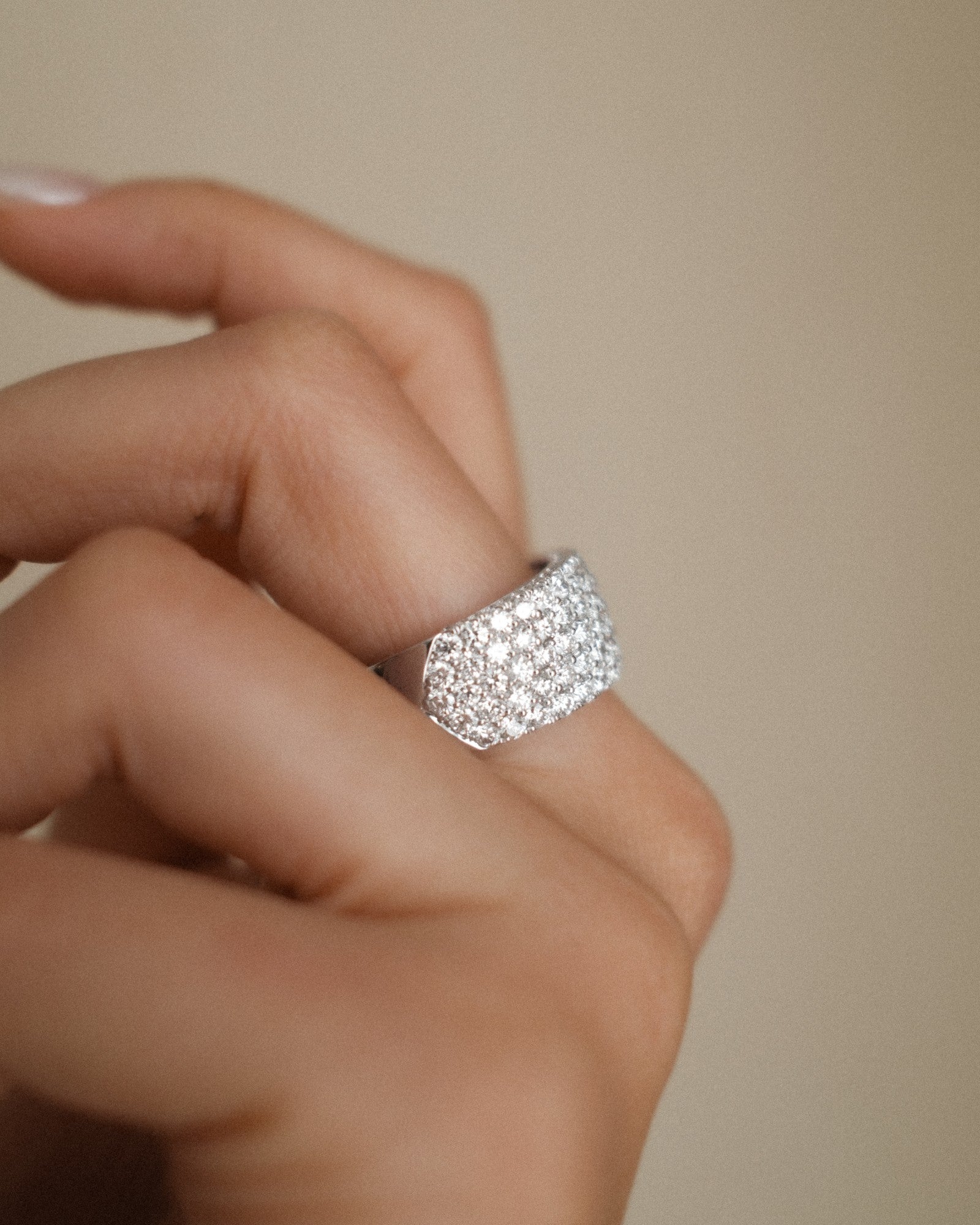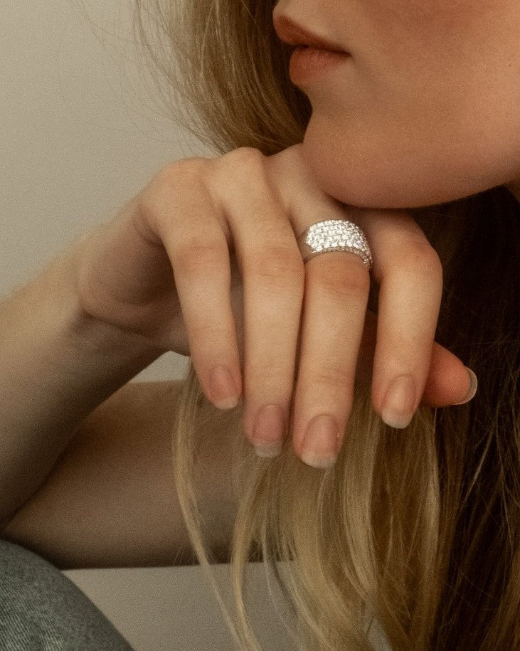 Make a statement without saying a word. This bold multi-row ring commands attention with five rows of high-shine diamonds. A wide band that catches light, and admiration, from every angle. It's a true showstopper for those who aren't afraid to be seen.