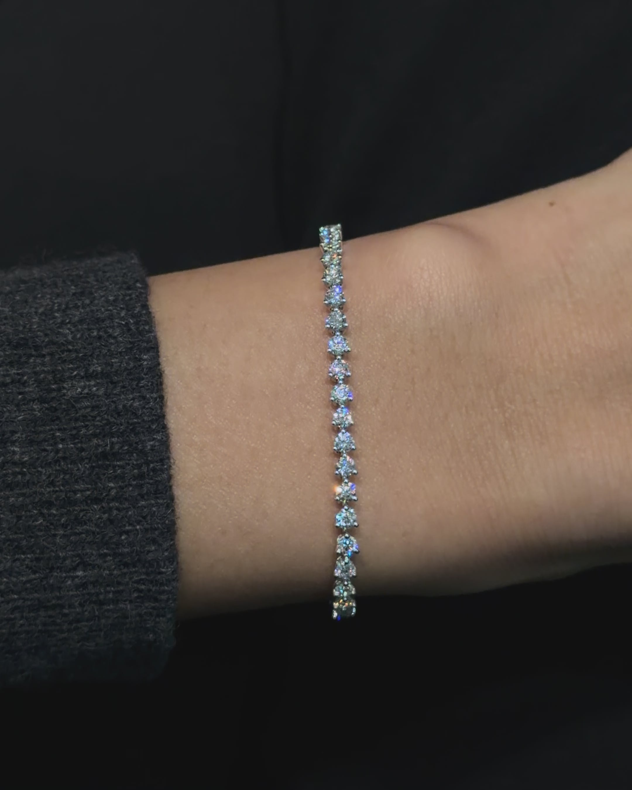 Sleek and streamlined. This three-prong design subtly guides the eye in a single direction, giving each Round diamond room to stand out. The prongs create space and definition, an intentional detail that adds flow to the entire piece. A refined take on the classic tennis bracelet, with a silhouette that feels both familiar and fresh.