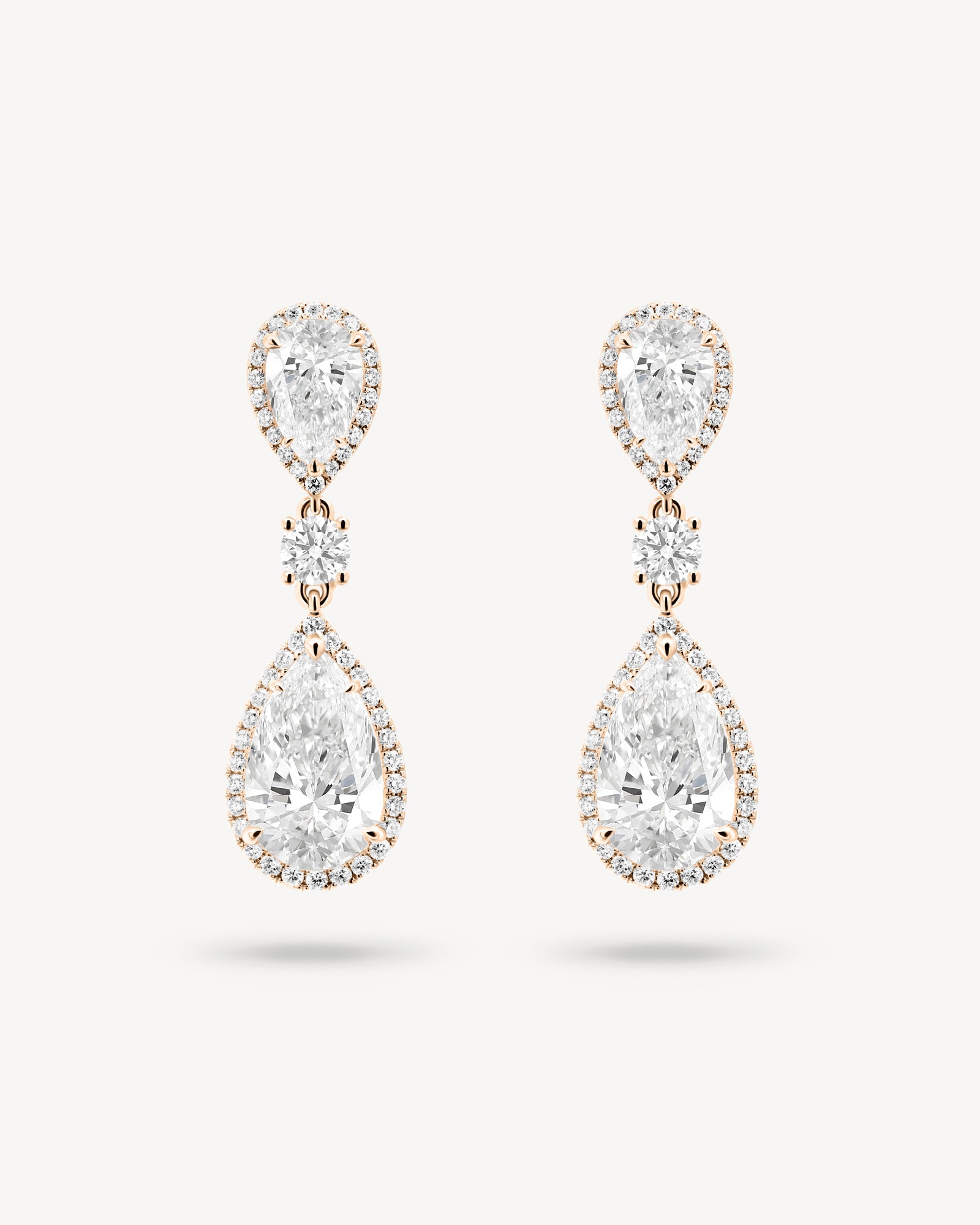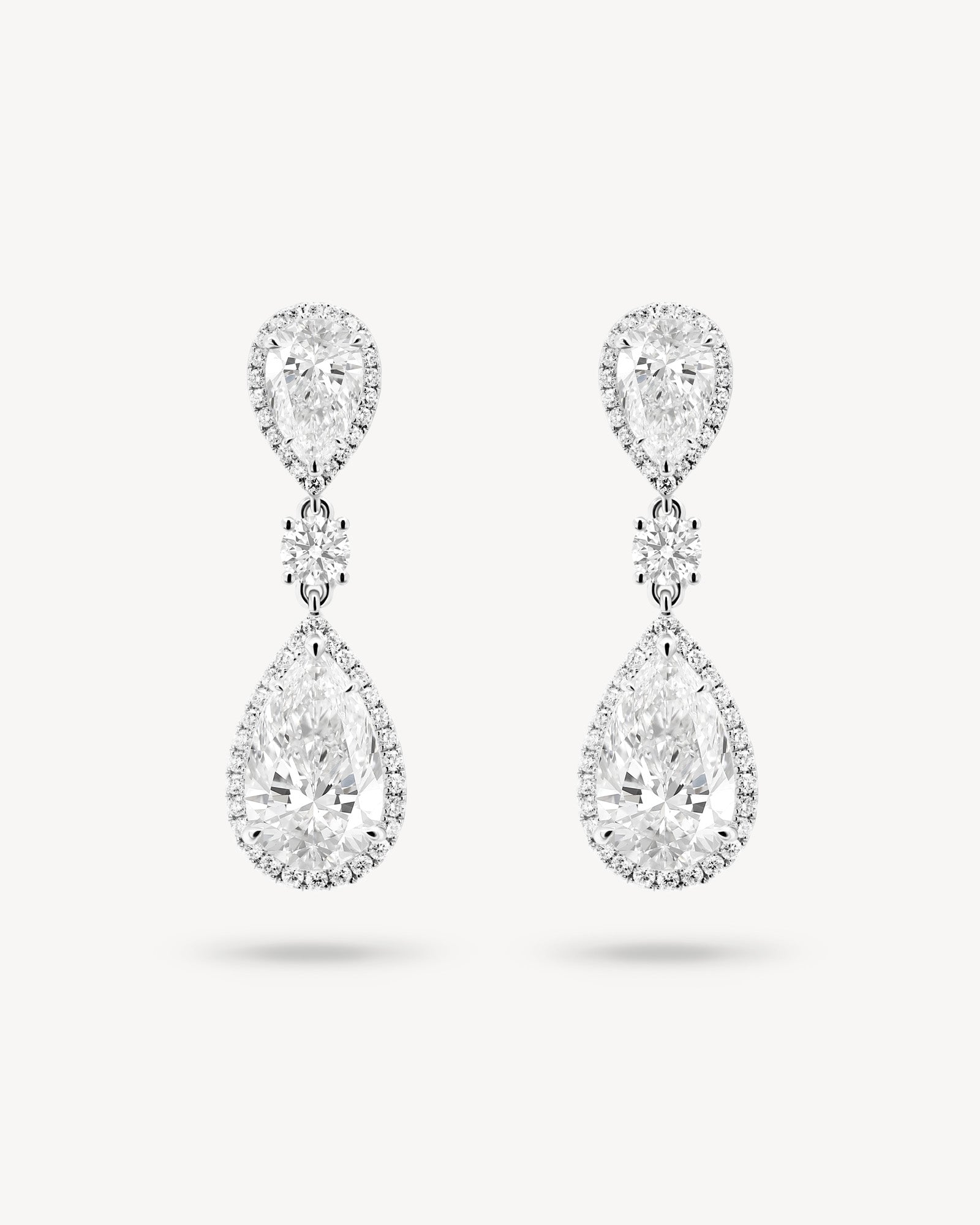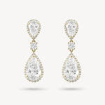 Double Pear Cut Diamond Halo Drop Earrings
