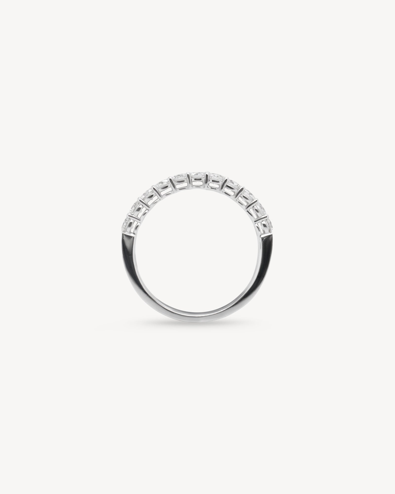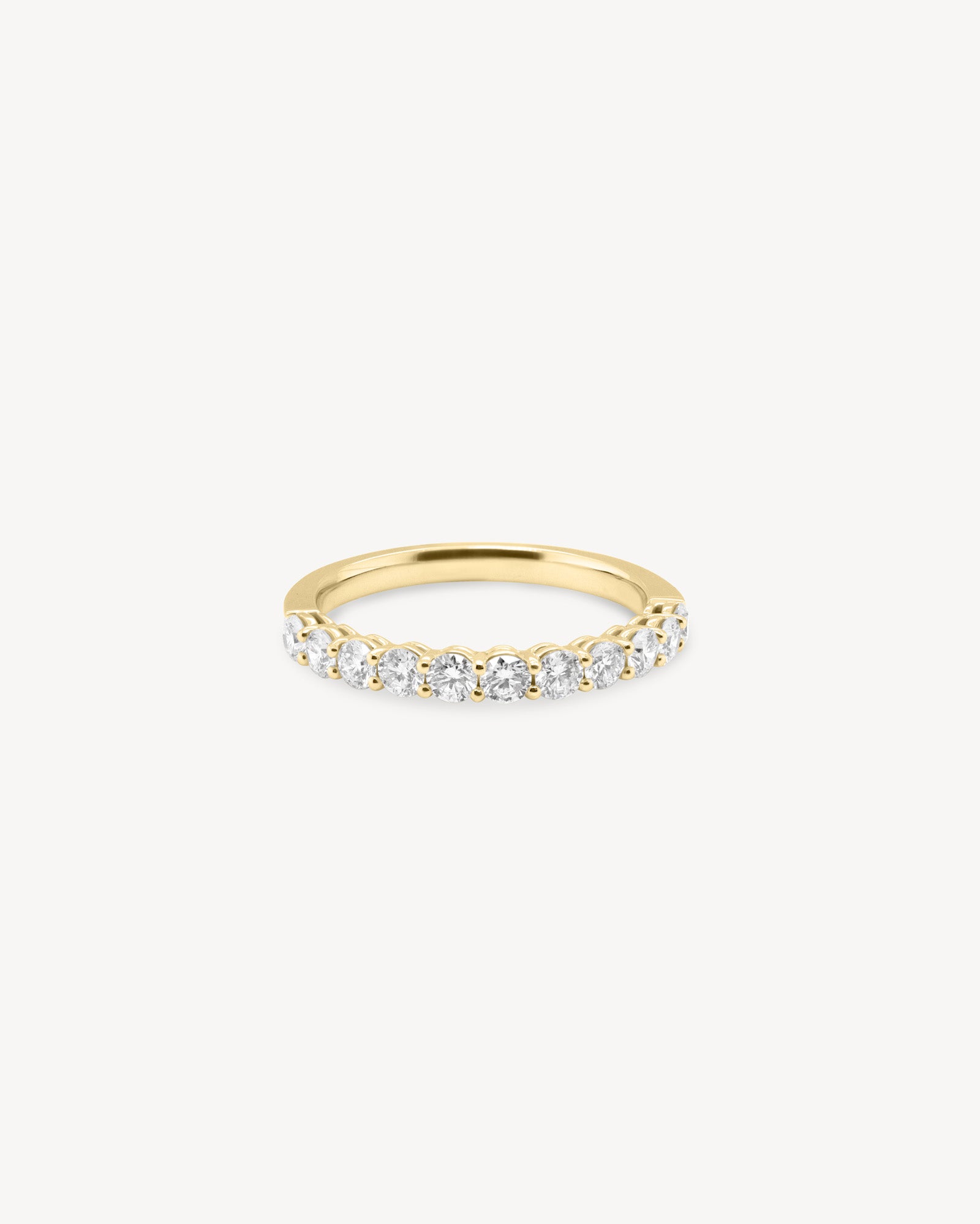 A timeless staple. This half eternity ring in an open gallery setting features Round cut diamonds set in a clean, continuous line. Delicate, classic, and easy to wear every day. A soft touch of sparkle you’ll reach for again and again.