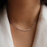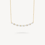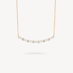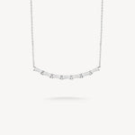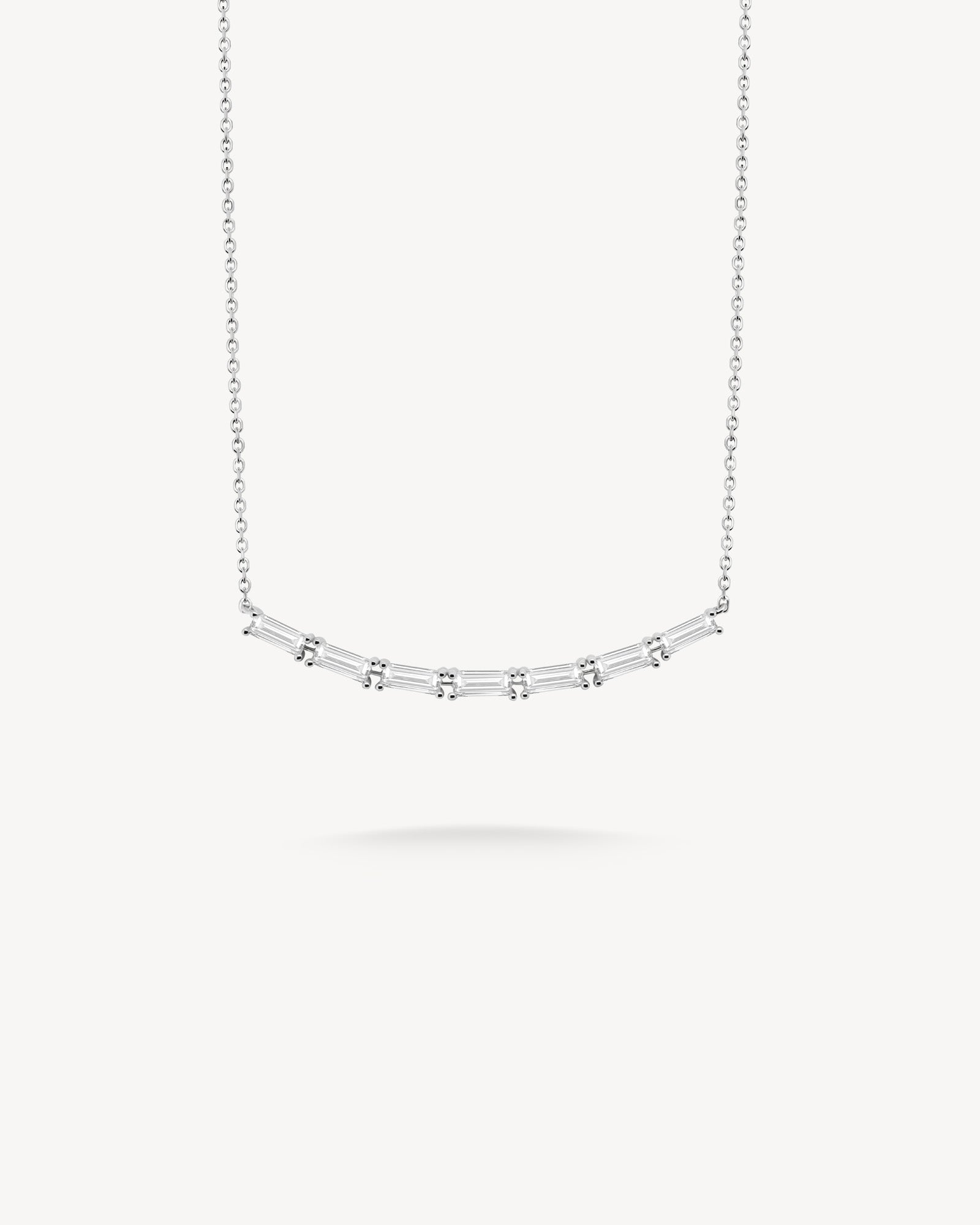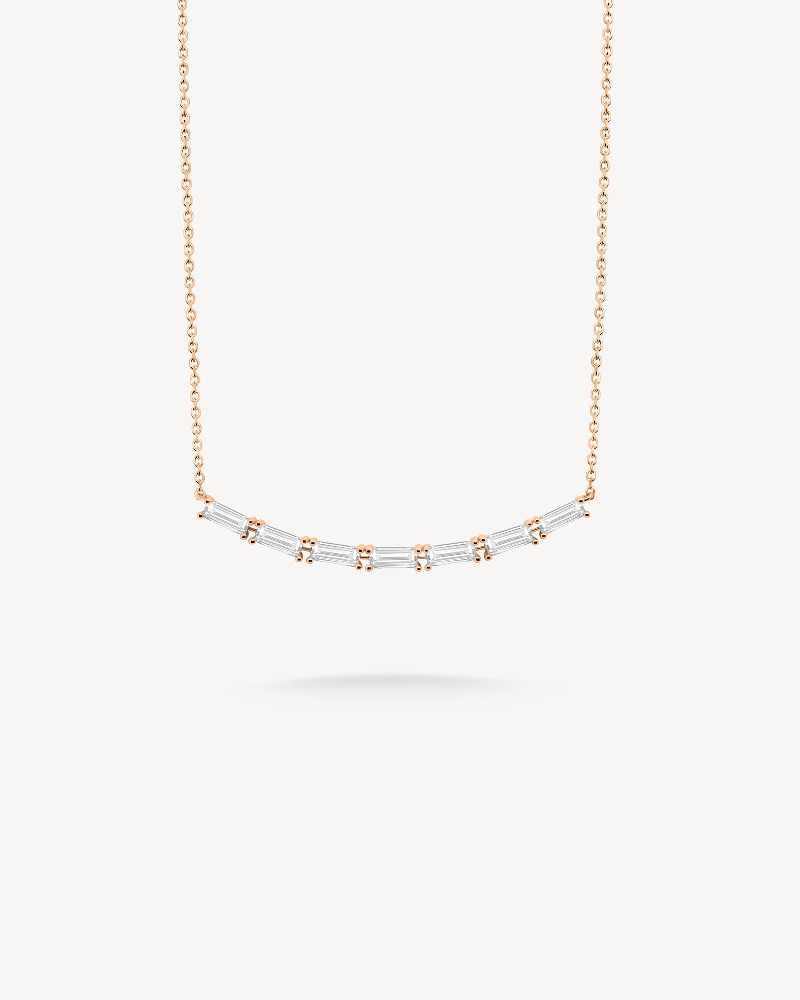 Baguette cut diamonds line up in a gentle curve, demonstrating clean lines, crisp shine, and a strong silhouette that stands out without trying too hard.