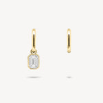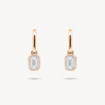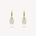Huggie Earrings with Removable Emerald Cut Bezel Diamond Drops