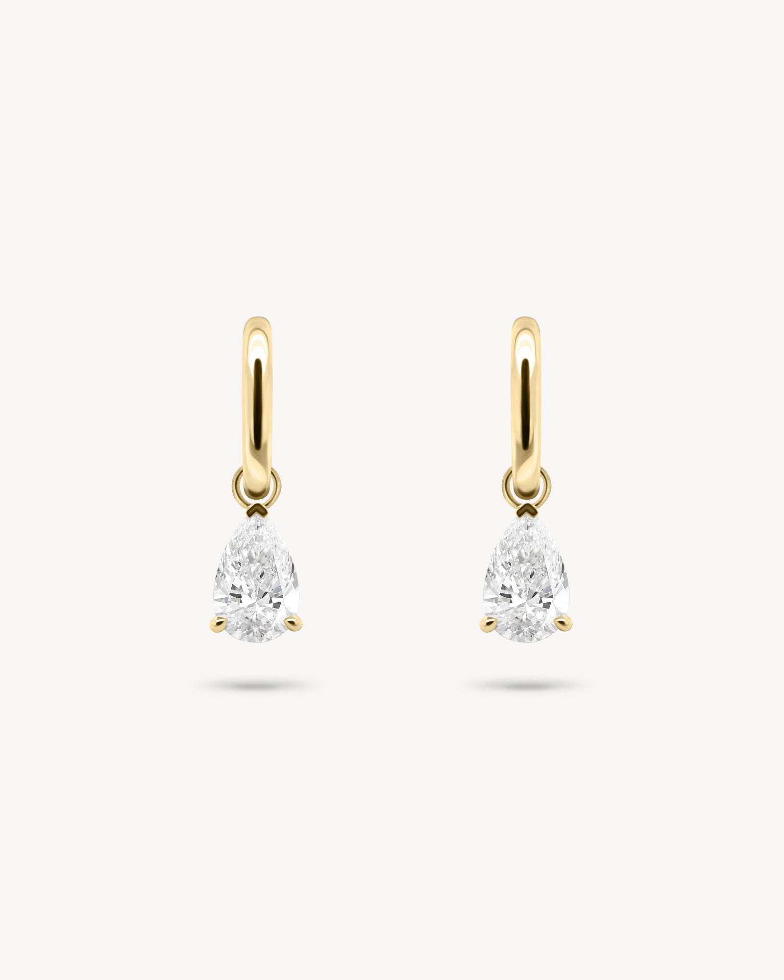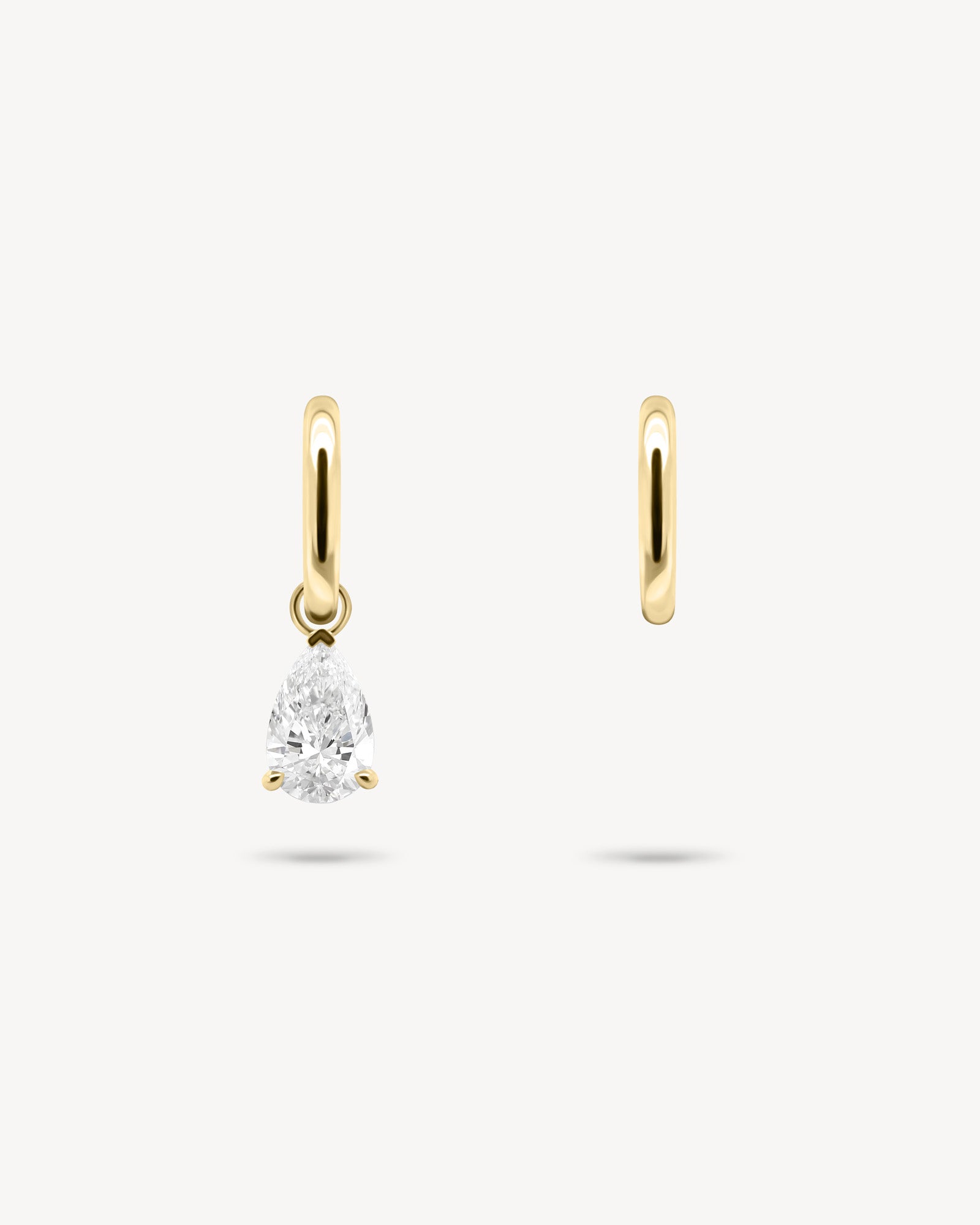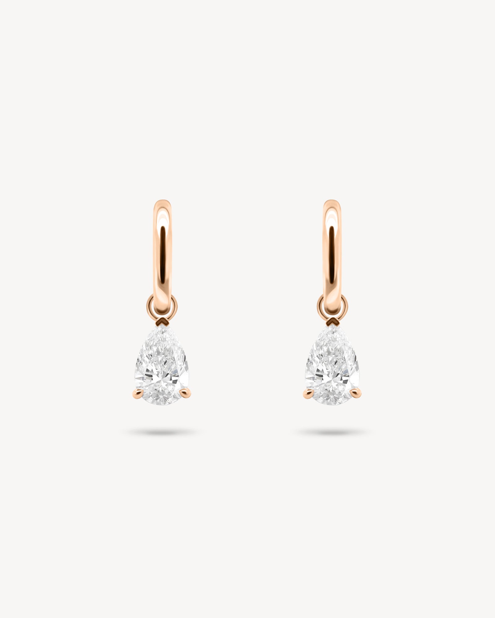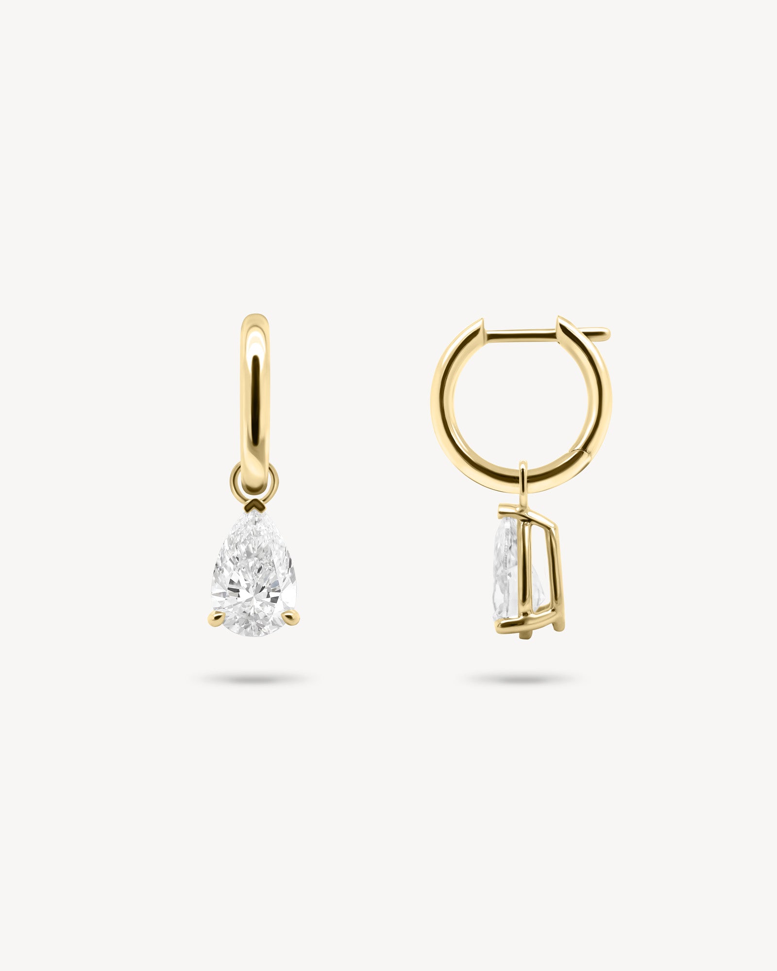 Two looks, one piece. These huggies are your everyday go-to: versatile, travel-ready, and endlessly wearable. Add the Pear cut diamond drops and they shift into something more striking.