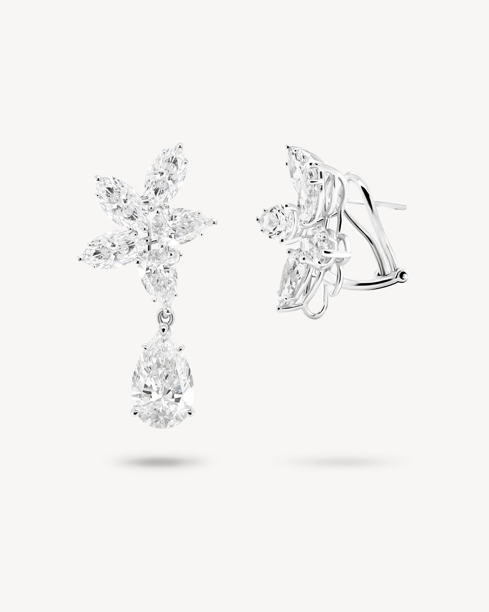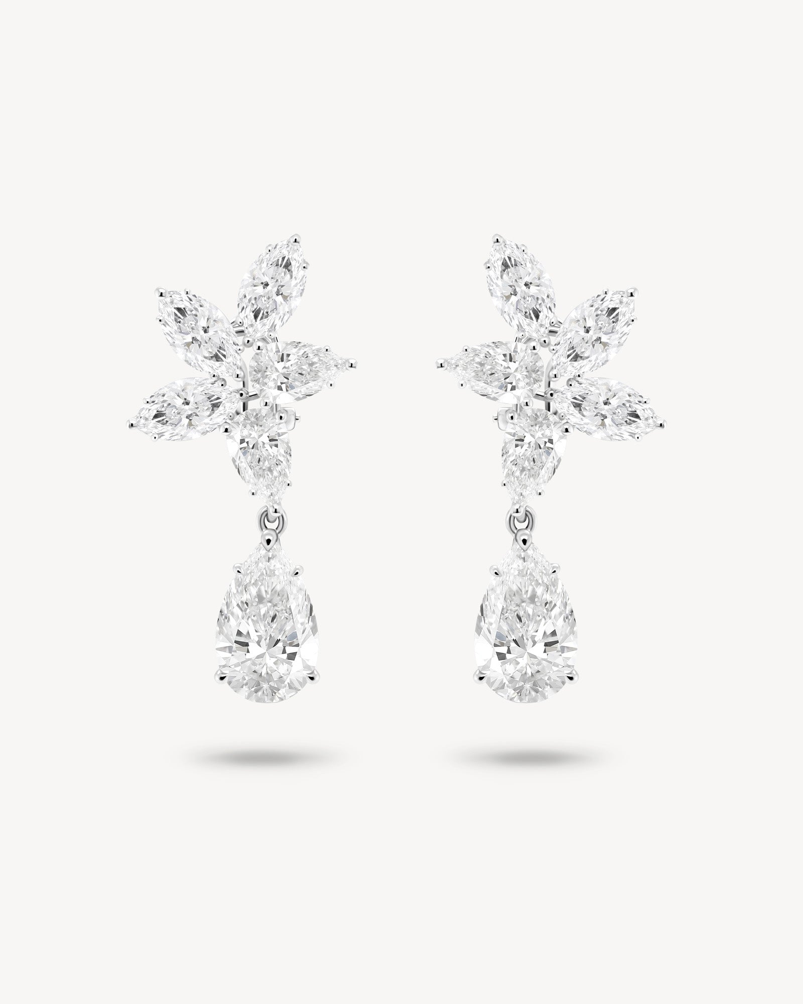 Mixed Diamond Cluster Stud Earrings with Removable Pear Cut Drops